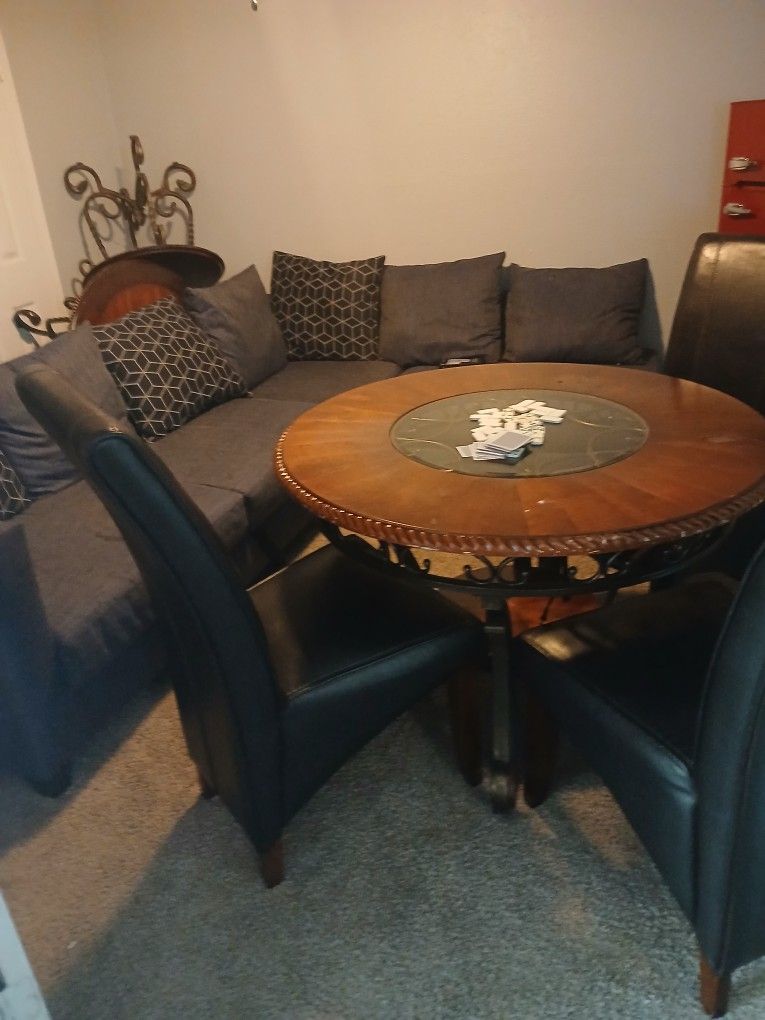 Sectional couch Dining room table in three Table