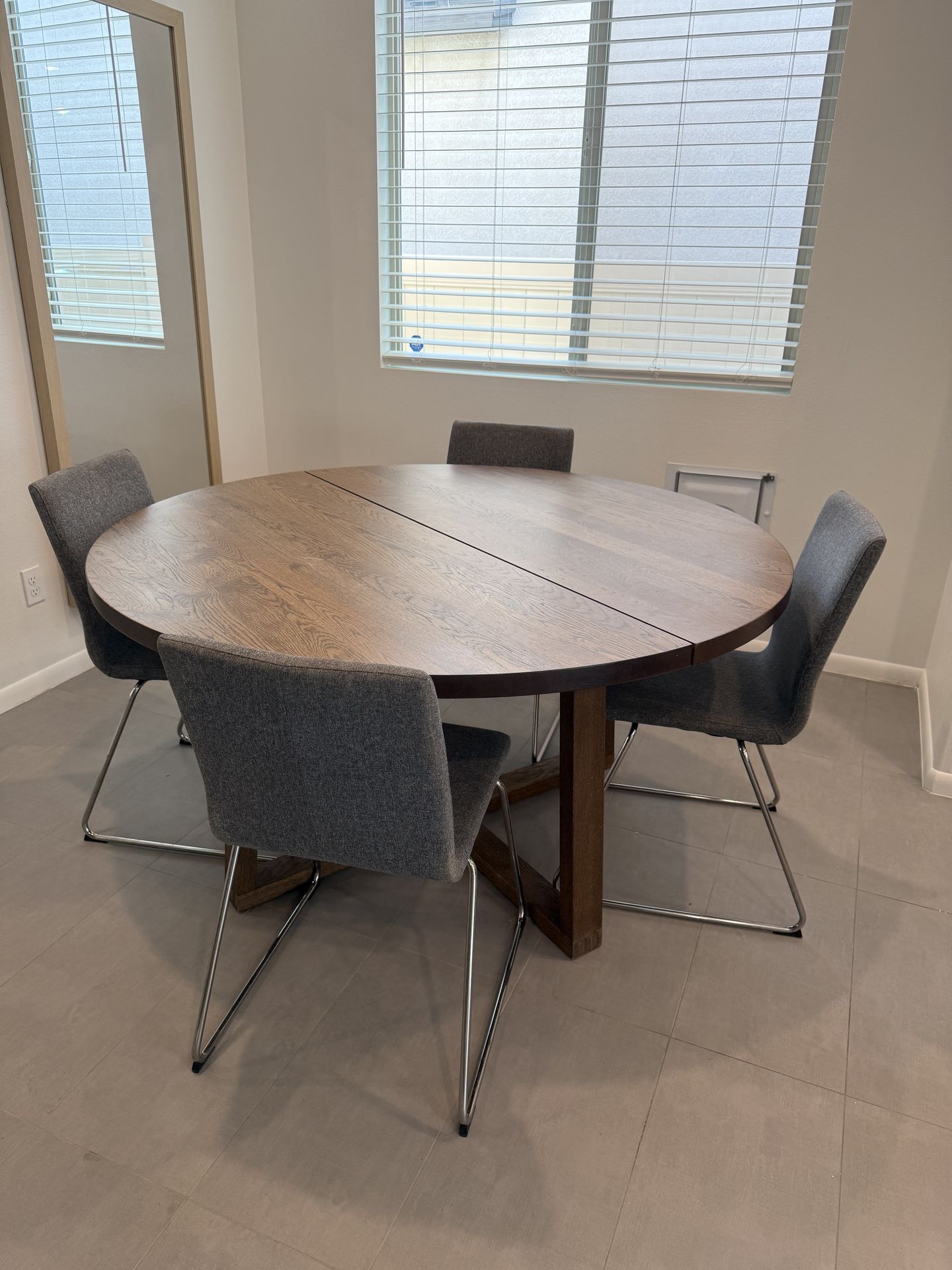 Ikea Morbylanga Round Dining Table with 4 Grey Chairs