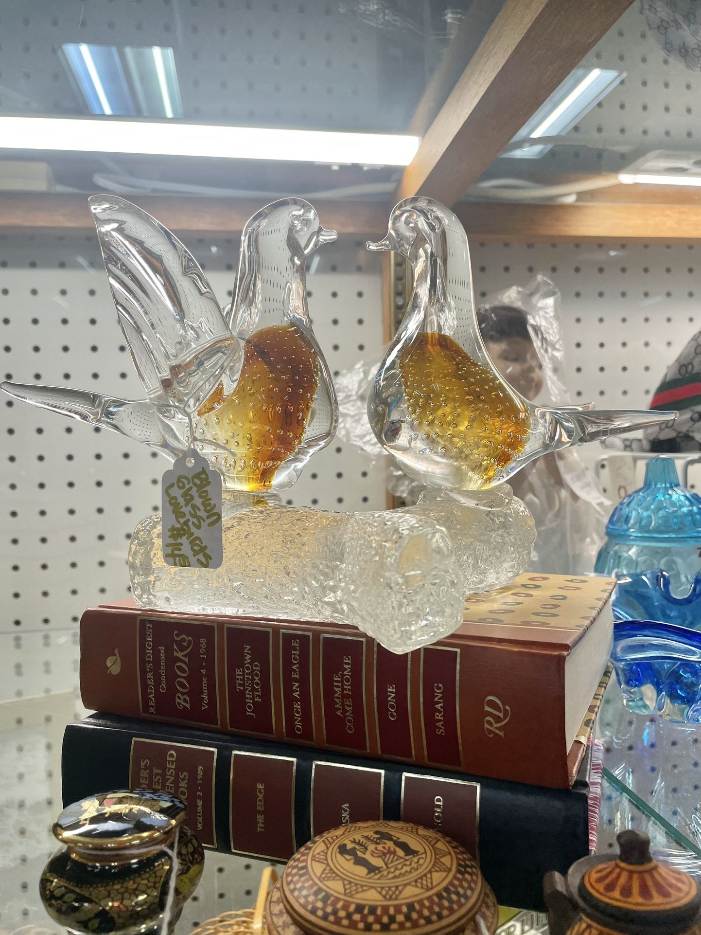 Murano Blown Glass Lovebirds On Branch
