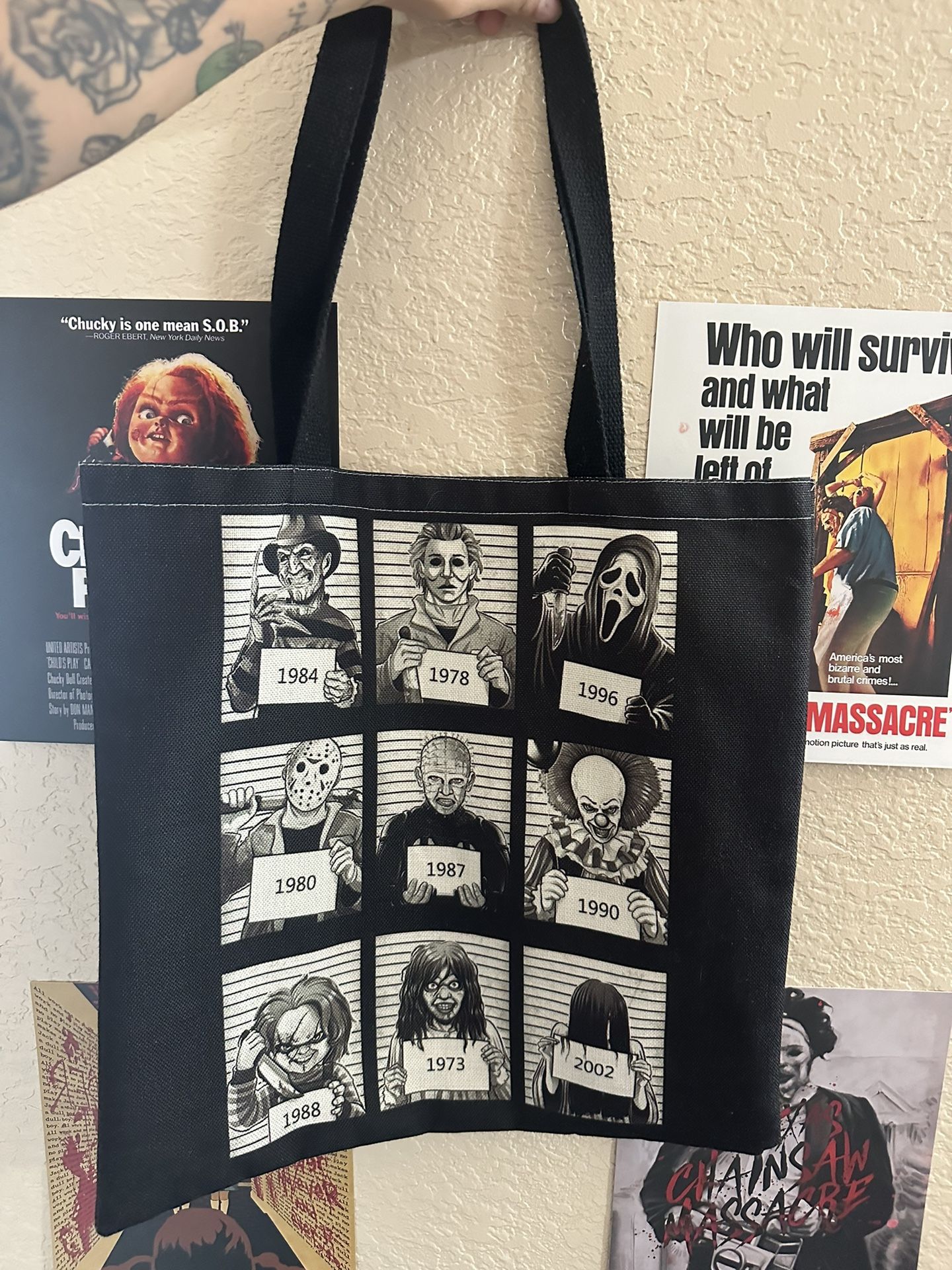 Horror movie character tote bag :3 stitching kinda getting loose look at last pic but can be sewed back easy