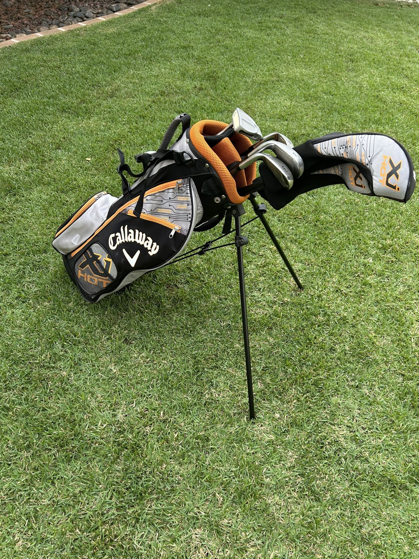 DRIVER360cc Lightweight Driver features a large, effective hitting area for outstanding forgiveness and longer drives FAIRWAY WOOD & HYBRIDDesigned to help get the ball in the air quickly and easily 7 IRON, 9 IRON & SAND WEDGE Cavity Back Irons with Extreme Weighting for amazing forgiveness and stability, and a 54 degree Sand Wedge for impressive control PUTTER Legendary Odyssey 2 Ball design for ultimate Tour proven accuracy STAND BAG Lightweight stand bag features a 5 way top,5 zippered pockets, water bottle holder, double strap, and rain hood