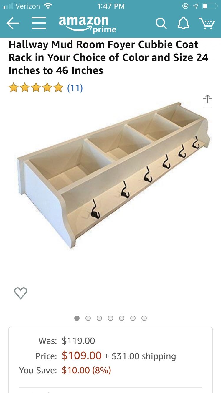Handmade cubby coat rack and entry shoe bench. Less than 6 months old. Super nice. Hate to get rid of it but it won’t fit in new house. Bought on amazon from Boxwood Woodworking. Bench is H 21 X D 13 X W 36 Coat rack is D 7 X W 35