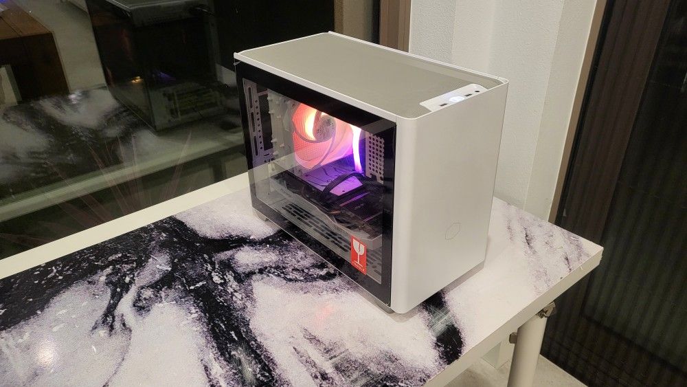 Parts alone are $1090 including tax. Itx form factor, Nice and small doesnt take up as much space as a regular sized pc. New . My first build only used once. Does not come with case fans!!! Runs Fortnite 100-200fps depending on settings and Minecraft at 400fps. Haven't tried any graphic intensive games. Case: White NR200P - Comes with tempered glass and vented panel Specs: - RAM: 32gb T-Force Delta rgb - CPU: Ryzen 5600x - GPU: Asrock Radeon 6600 - Motherboard: B550I Aorus Pro Ax - Power supply unit: SeaSonic FOCUS SGX - Cooler: Assassin X Refined SE ARGB - Storage: 1tb Adata XPG SX8200 Pro Windows 11 Home 3rd and 4th photos are with vented panel on. Last 2 are the bottom and side/back