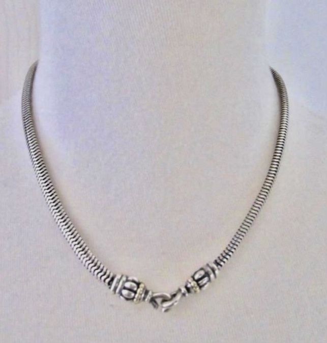Two Identical Caviar vintage sterling silver and 18K yellow gold snake chains necklace.