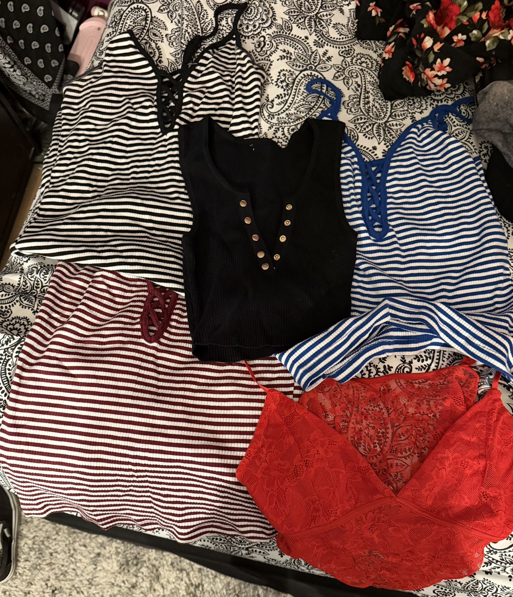 Selling bag full of cute clothes cute tops, leggings, jeggings everything is like new sizes M, L