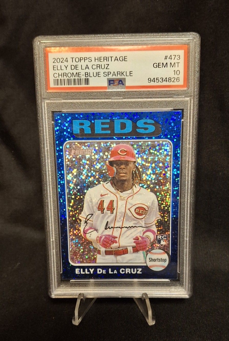 2024 TOPPS HERITAGE ELLY DE LA CRUZ BLUE SPARKLE PSA 10 ROOKIE CARD