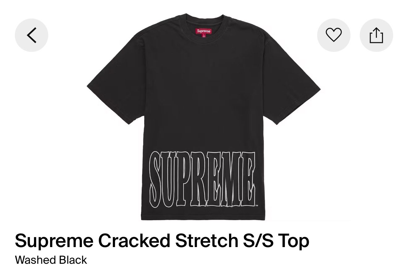 The product is a new XXL Supreme Cracked Stretch Tee in black, featuring a crew neck and short sleeves made of cotton. Designed for men, this regular fit t-shirt is perfect for the summer season with its stretch material for added comfort. With the brand's reputation for quality and style, this tee is a stylish and versatile addition to any wardrobe. Ready to ship, this item is a must-have for any Supreme enthusiast.