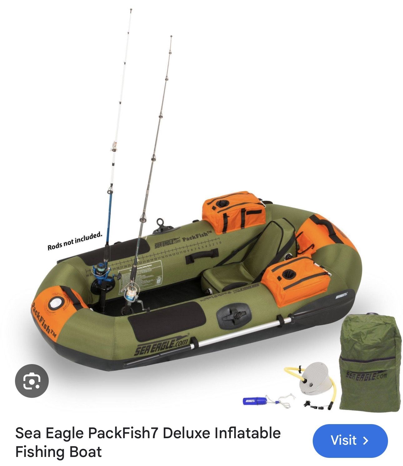 PackFish7 Sea Eagle Inflatable Fishing Raft Fishing Boat Used Three Times Very Nice. Excellent Like New Condition.