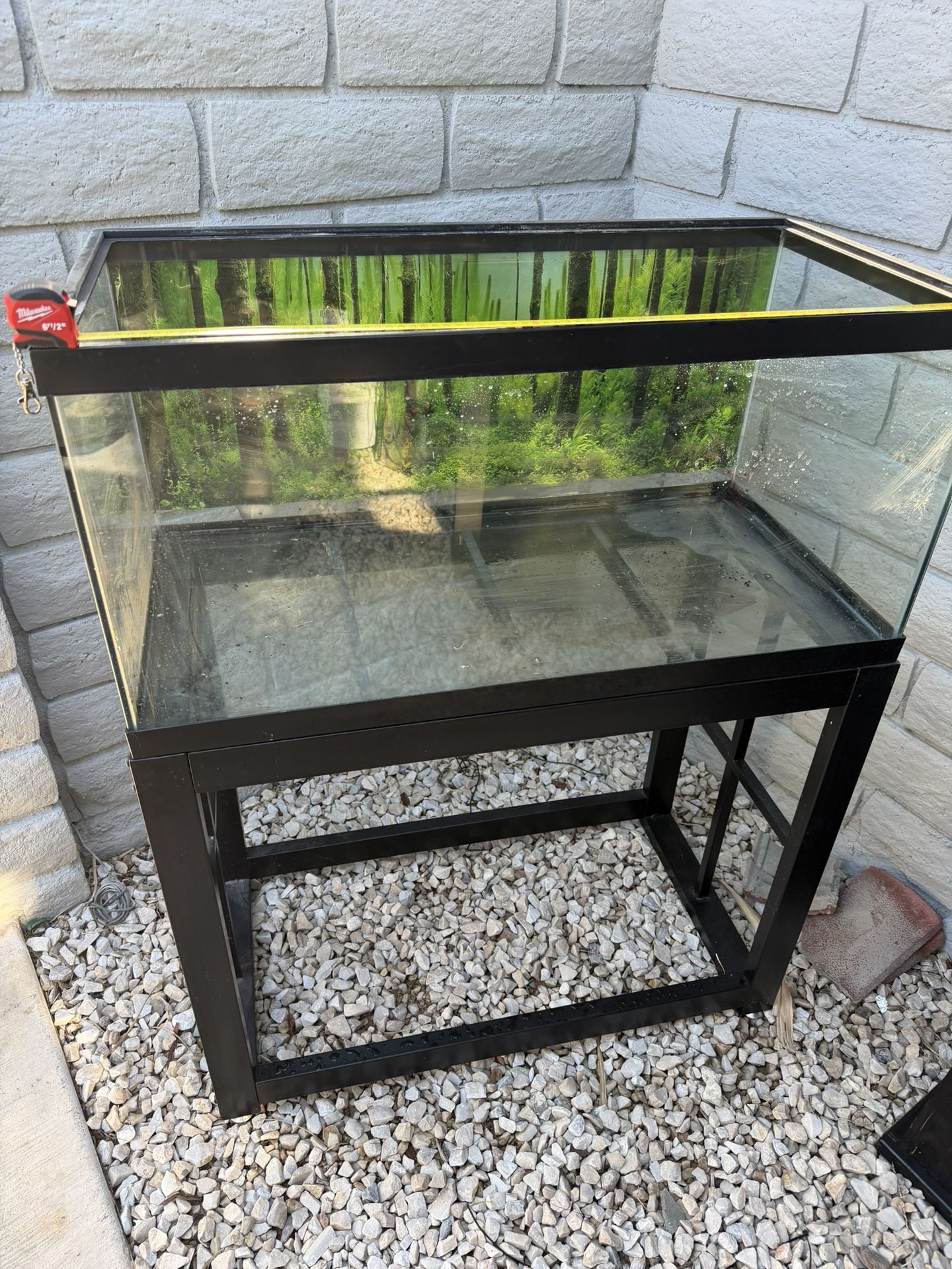 Has a slow leak, ready for reseal w silicone, near Decatur and Twain. Great looking tank When fixed up use it for Aquascape