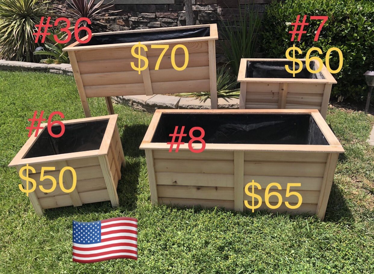 20 different models and sizes made of new cedar wood, with its interior lined in plastic and a fine finish. Assembled in its entirety. I have permanent stock. (DOES NOT include plants) Made in USA ๐บ๐ธ