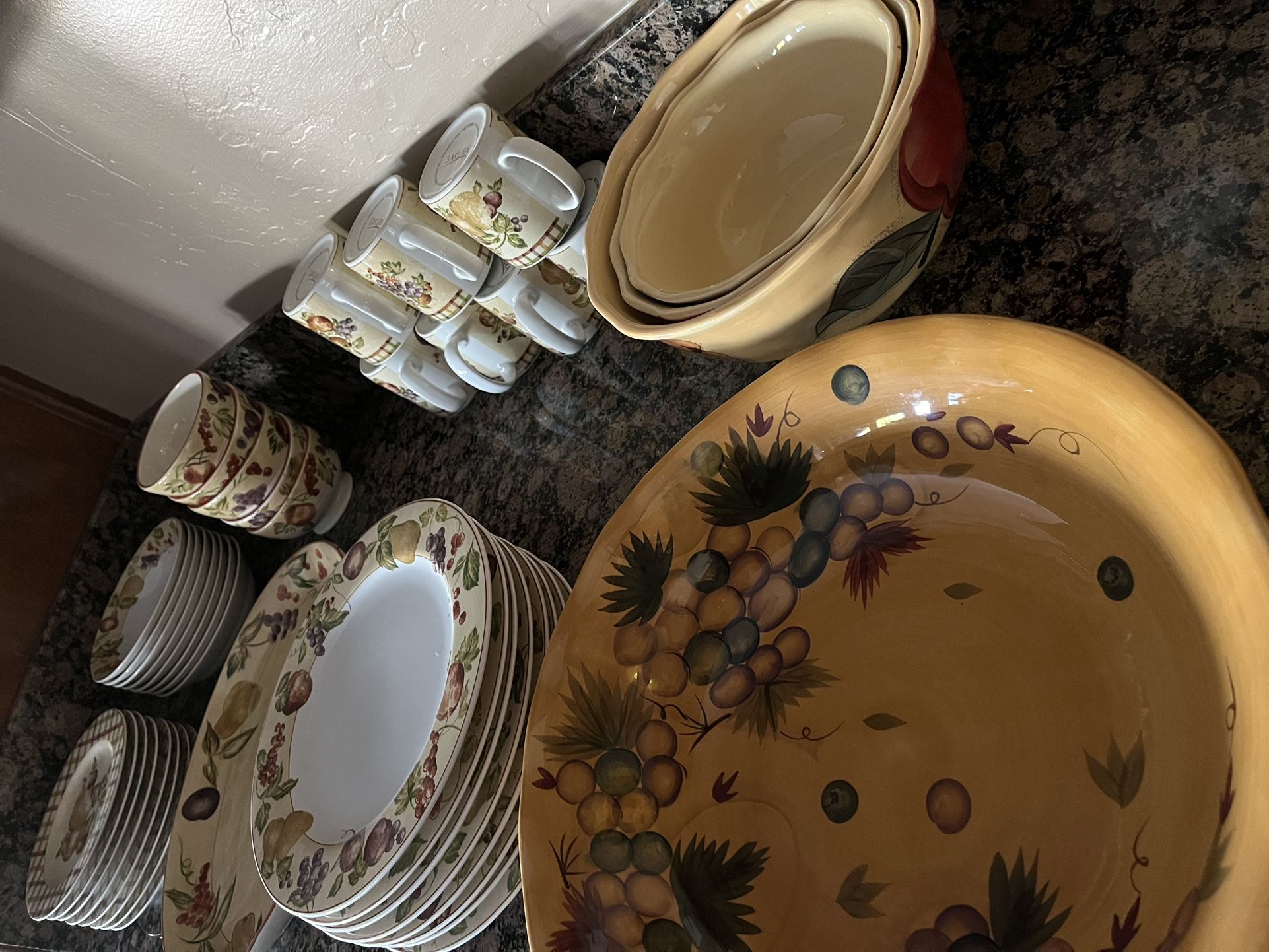 Used like a new dinner plates , cups and dishes bowls Only $55