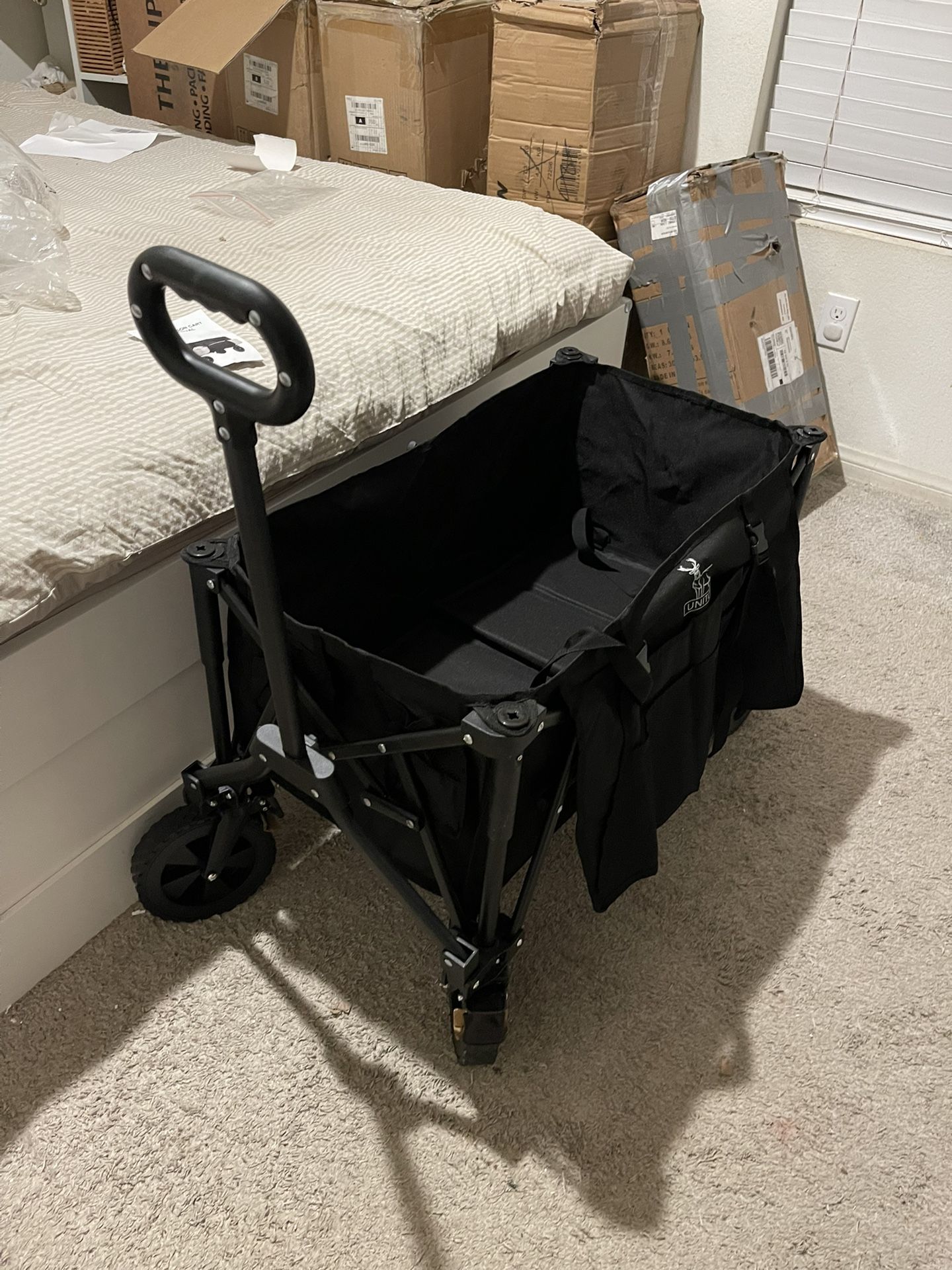 Utility Cart Folding Wagon Cart Collapsible with Side Pocket and Brakes Foldable Wagon for Garden Sports Beach Outdoor