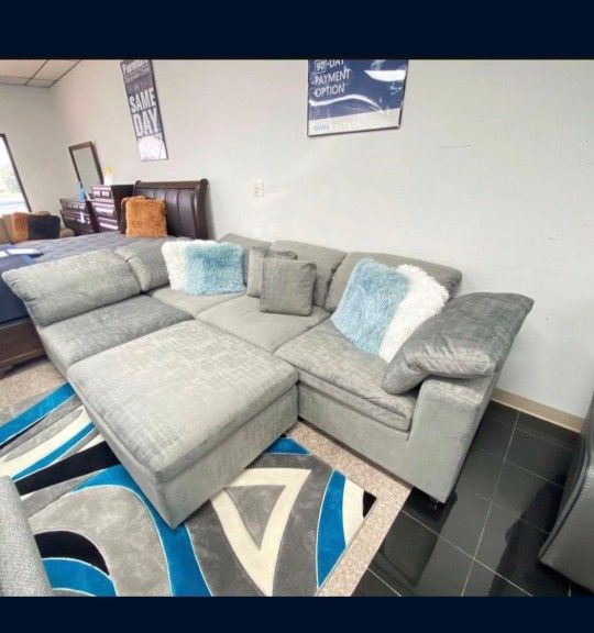 *Black Friday Now*---Lima Gray Fabric Flexible Sectional Sofa W/Ottoman---Delivery And Easy Financing Available👏