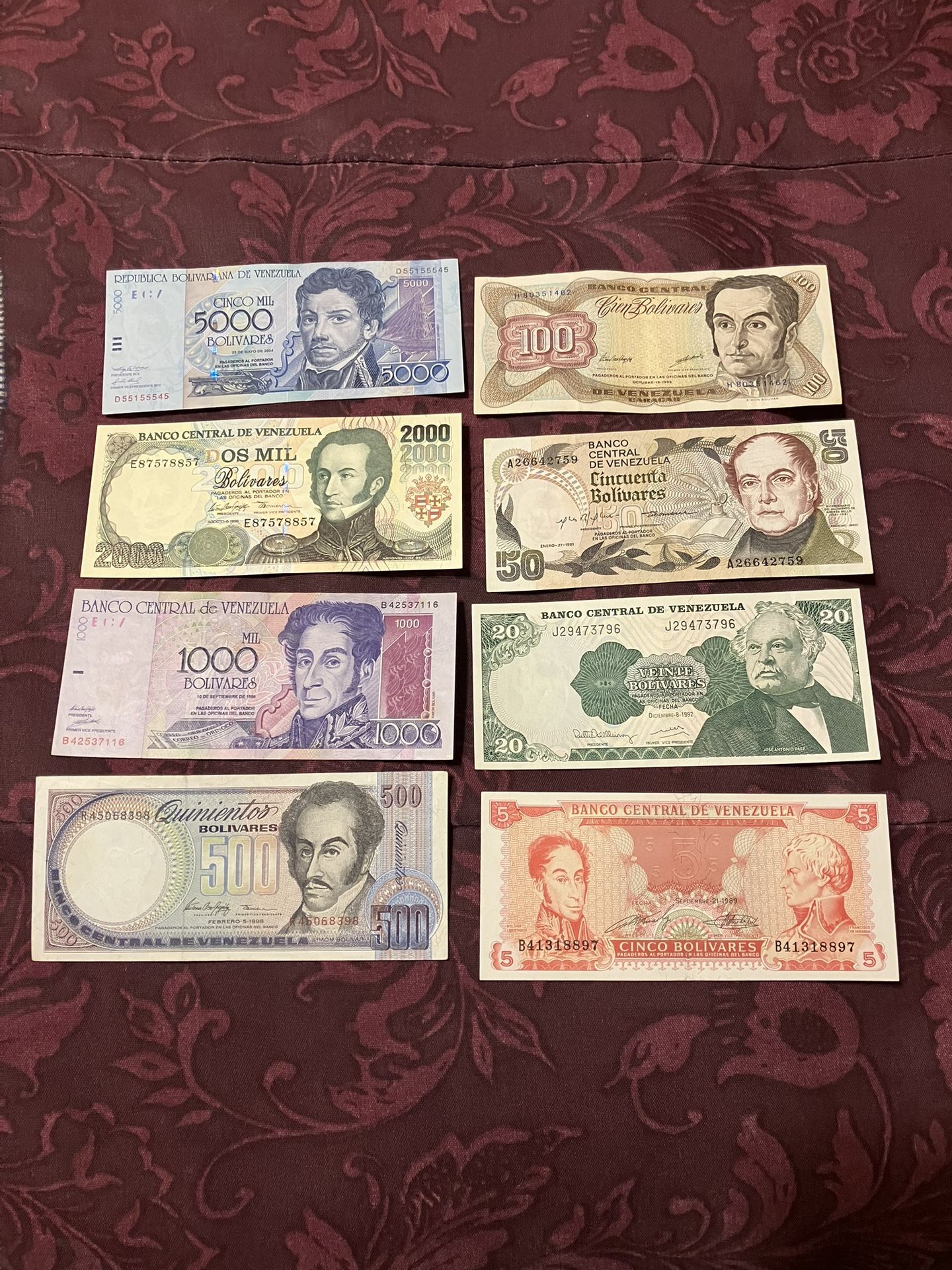Lote de 8 billetes de VENEZUELA para tu colección de billetes $55 por todos En excelentes condiciones