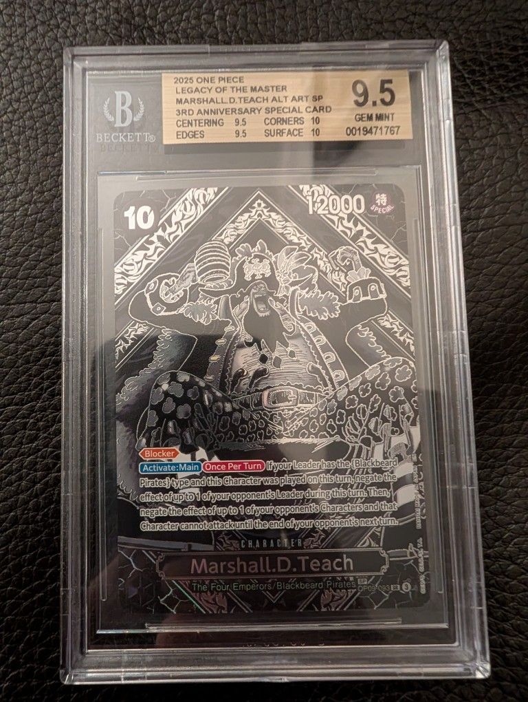 One Piece OP09-093 Marshal.D.Teach Anniversary SP Silver BGS 9.5 Gem Mint (similar to PSA 10)