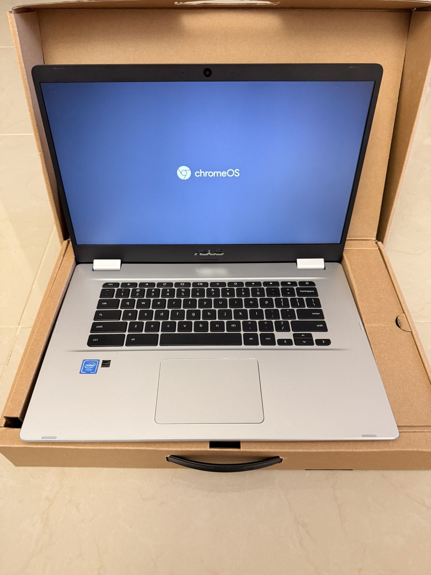 ASUS Chromebook C523NA for sale. 15.6in screen. Factory reset. Great condition barely used. Still has original box and charger too.