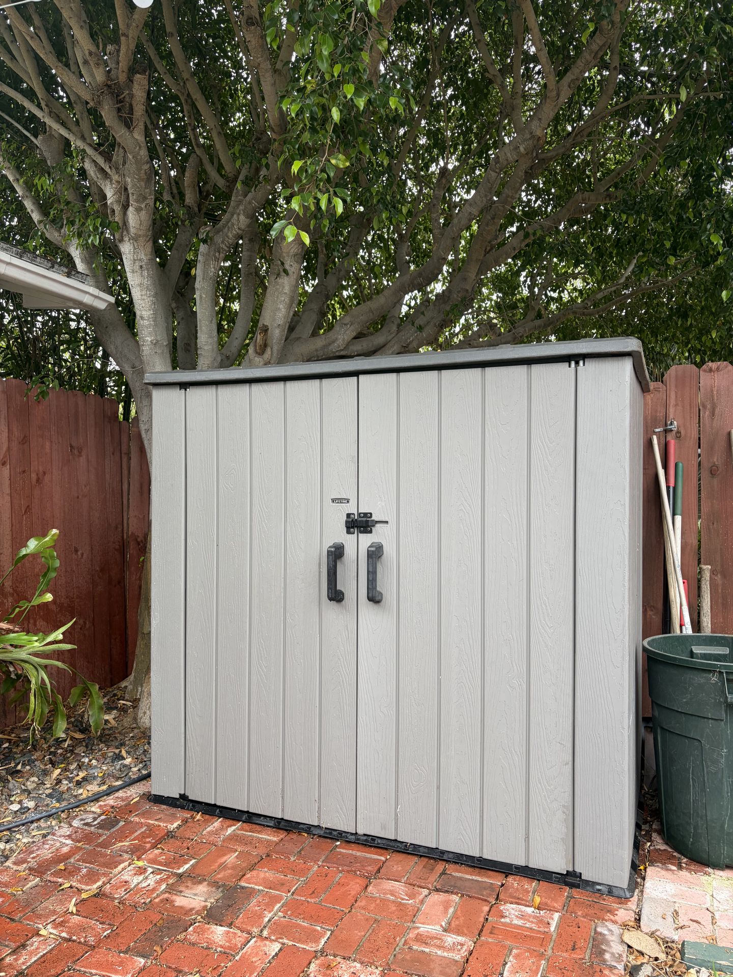 Lifetime shed purchased 1 year ago. Moved into a place with a garage so no need for it anymore.