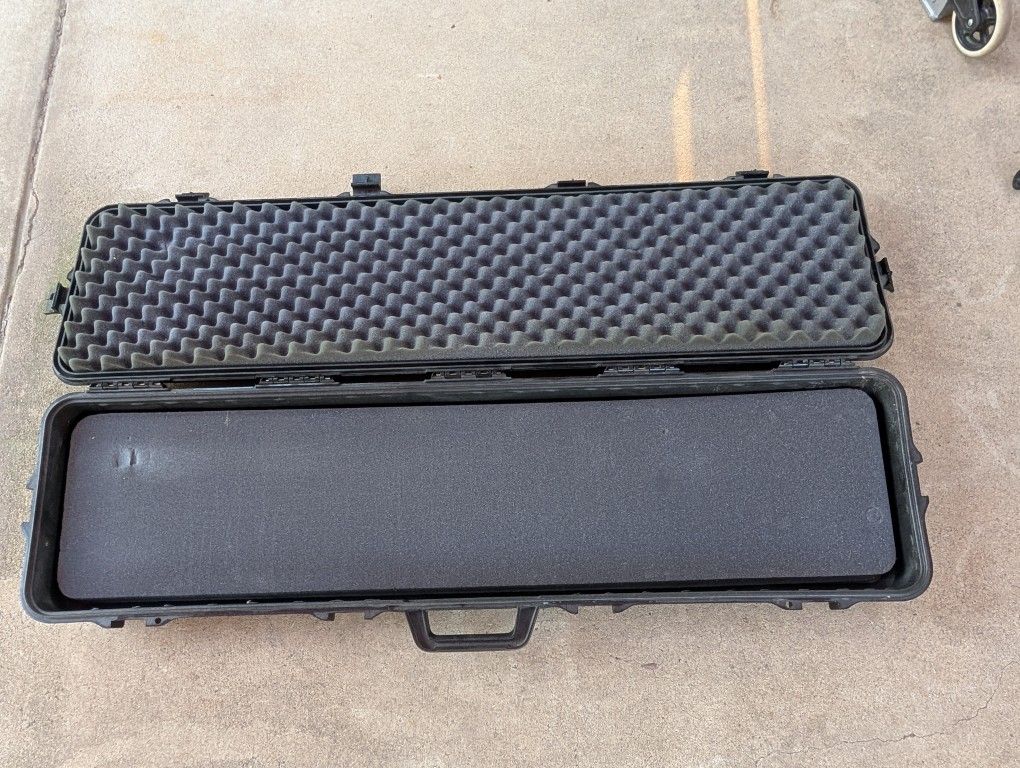 Doscocil impact protection for your shotgun, rifle or other gear. Has five latches and lock protection. Can also be used to carry spear fishing, sporting goods and sensitive land grading or leveling equipment. High impact resistant. 4' 4" long X 12" wide.