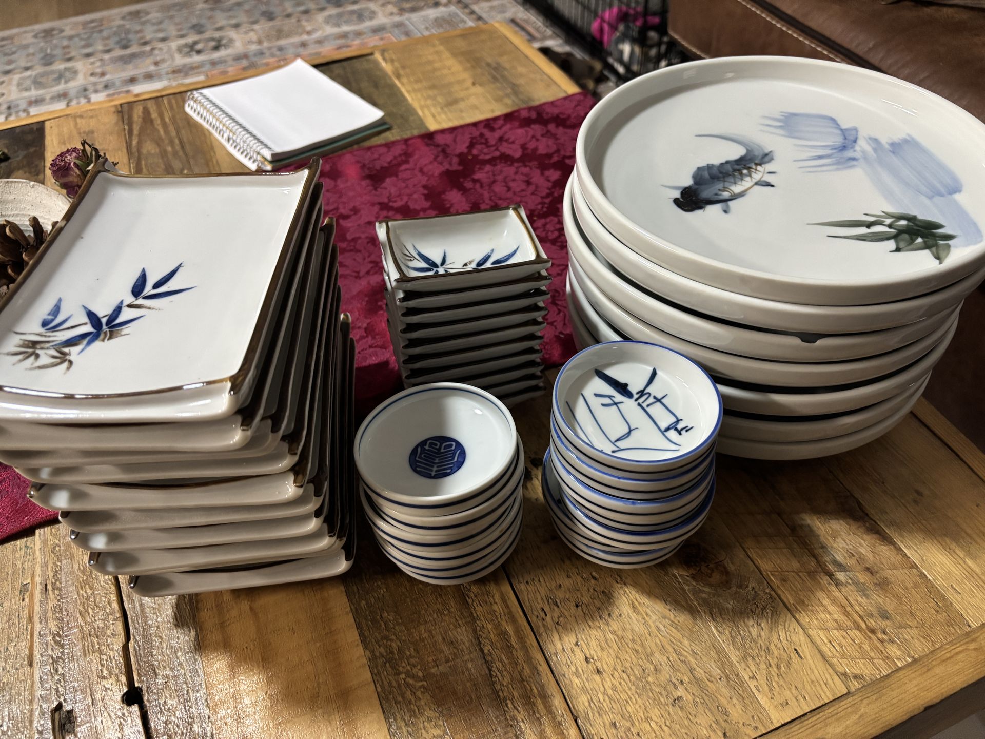 5 piece dish set with numbers of each piece pictured, 40 pieces total A couple have chips but overall good condition $40 obo