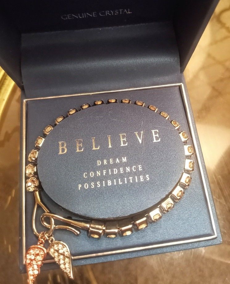 Elegant gold-tone bracelet w/ genuine crystal accents & two sparkling angel wing charms. Never been worn-- comes brand new in its original box. However, I received it as a Hannakuh present 3 or 4 years ago and the poor thing has just been sitting in a drawer- untouched. It's a gorgeous piece of jewelry which is why I figured it's time to pass it on to someone who will actually show it off! ✨ Purchased from Kohl's- Retail Price: $50 Selling Price: $30 OBO