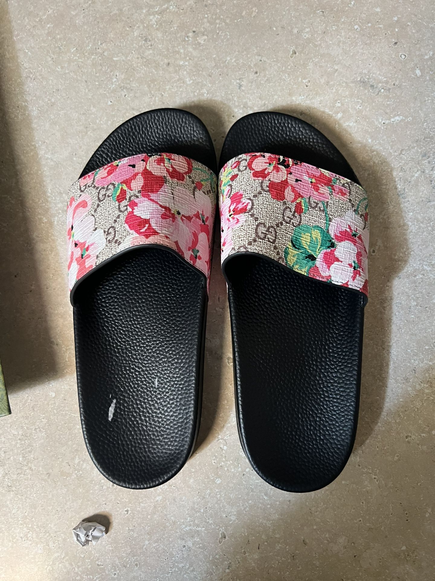 Guccis sandles don’t fit so I’m selling 450 obo lowest I’ll do is 380 paid 500 for them fits size 7 or 8 comes with dust bag also I’ll find the receipt all legit