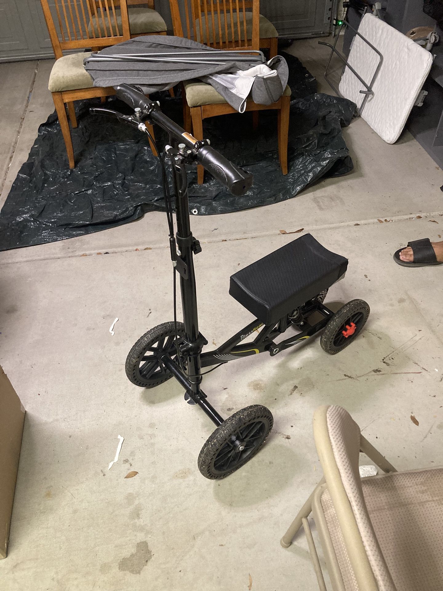 All terrain knee scooter in good condition. I have the basket that comes with it I just forgot to include it in the photos. Folds for easy transport