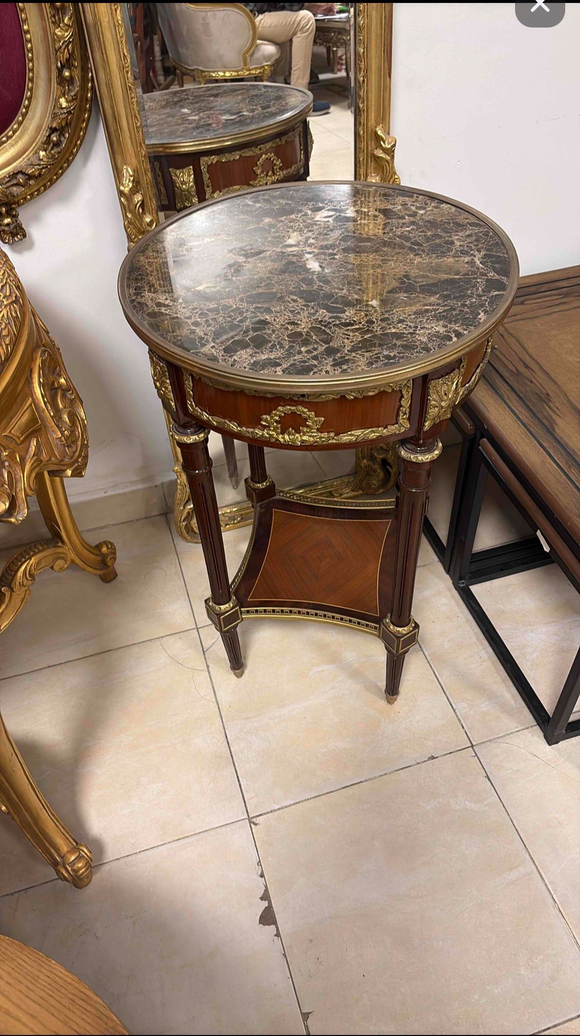 Louis XVI Occasional Table LOOK UP A Louis XVI style mahogany occasional table with marble top and ormolu. TIME PERIOD Late 19th Century ORIGIN France ESTIMATED VALUE I estimate this Louis XVI style occasional table to be valued between $3,000-$5,000 USD. HISTORY The Louis XVI style, prevalent in France from 1774 to 1792, marked a return to classical antiquity, drawing inspiration from ancient Greek and Roman aesthetics. This period saw a shift towards more restrained ornamentation compared to the Rococo style, emphasizing symmetry, straight lines, and refined details like fluting, Greek key patterns, and neoclassical motifs. Furniture from this era is known for its elegance, proportion, and the use of fine woods, often adorned with intricate marquetry and gilt bronze (ormolu) mounts. This replication ccasional tables, also known as side tables or accent tables, became increasingly popular during the 18th century as interior spaces became more elaborate and functional. These smaller tables served various purposes, from holding lamps and books to displaying decorative objects. Marble tops were a common feature, prized for their durability, luxurious appearance, and coolness, often paired with richly carved wooden bases or metalwork, reflecting the prevailing decorative trends of the time.