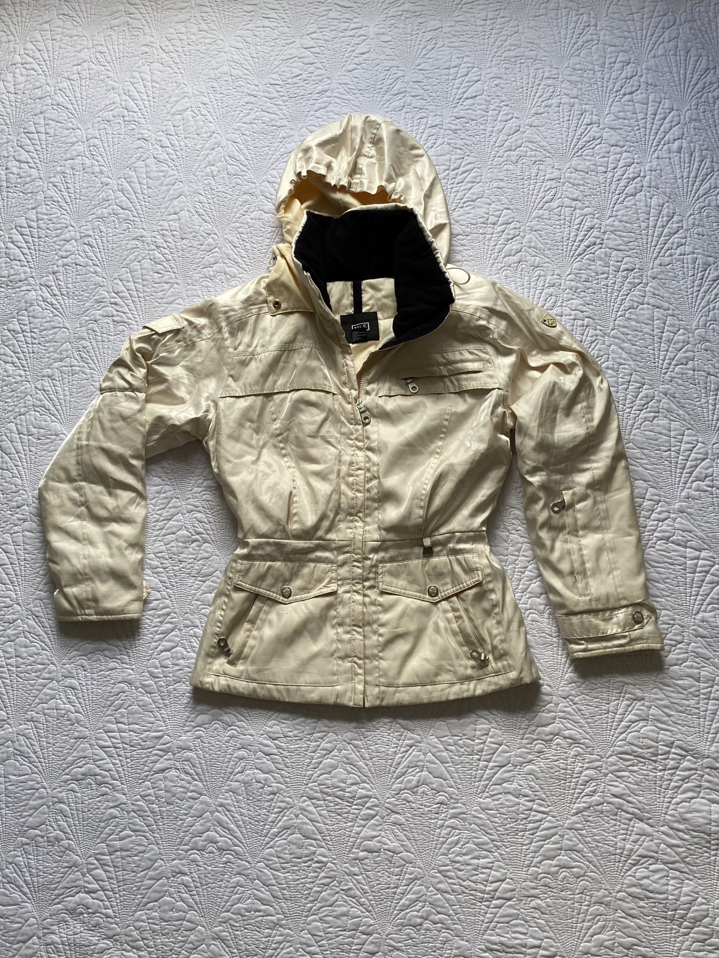 Perfect condition. Pearl color with some shimmer. Women's ski jacket. Size 6. Hood can be stored.
