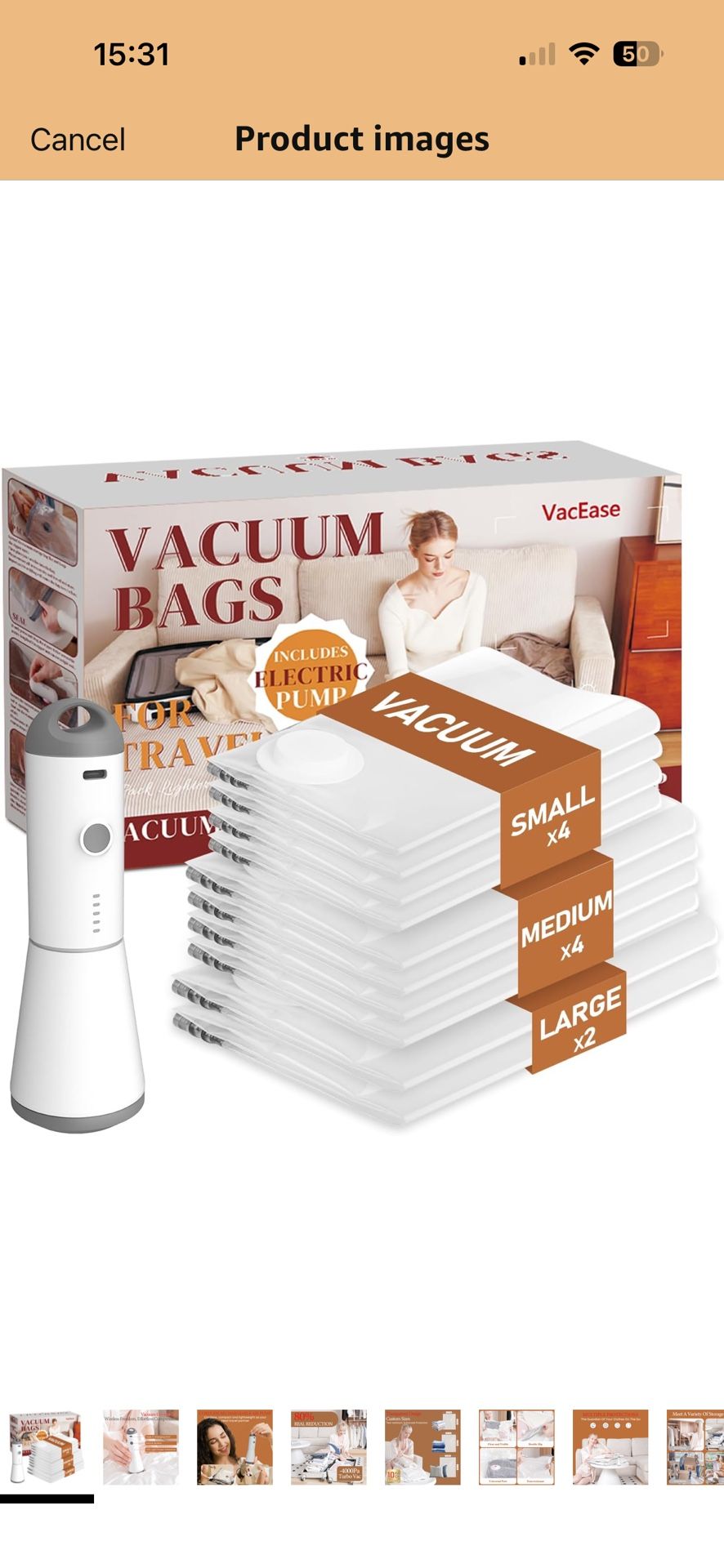 Vacuum Storage Bags for Clothing Travel, 10 Pack Vacuum Bags with Rechargeable Cordless Air Pump(2 Large+4 Medium+4 Small), Compression Packing for Clothes Blanket Suitcase Luggage Amazon's