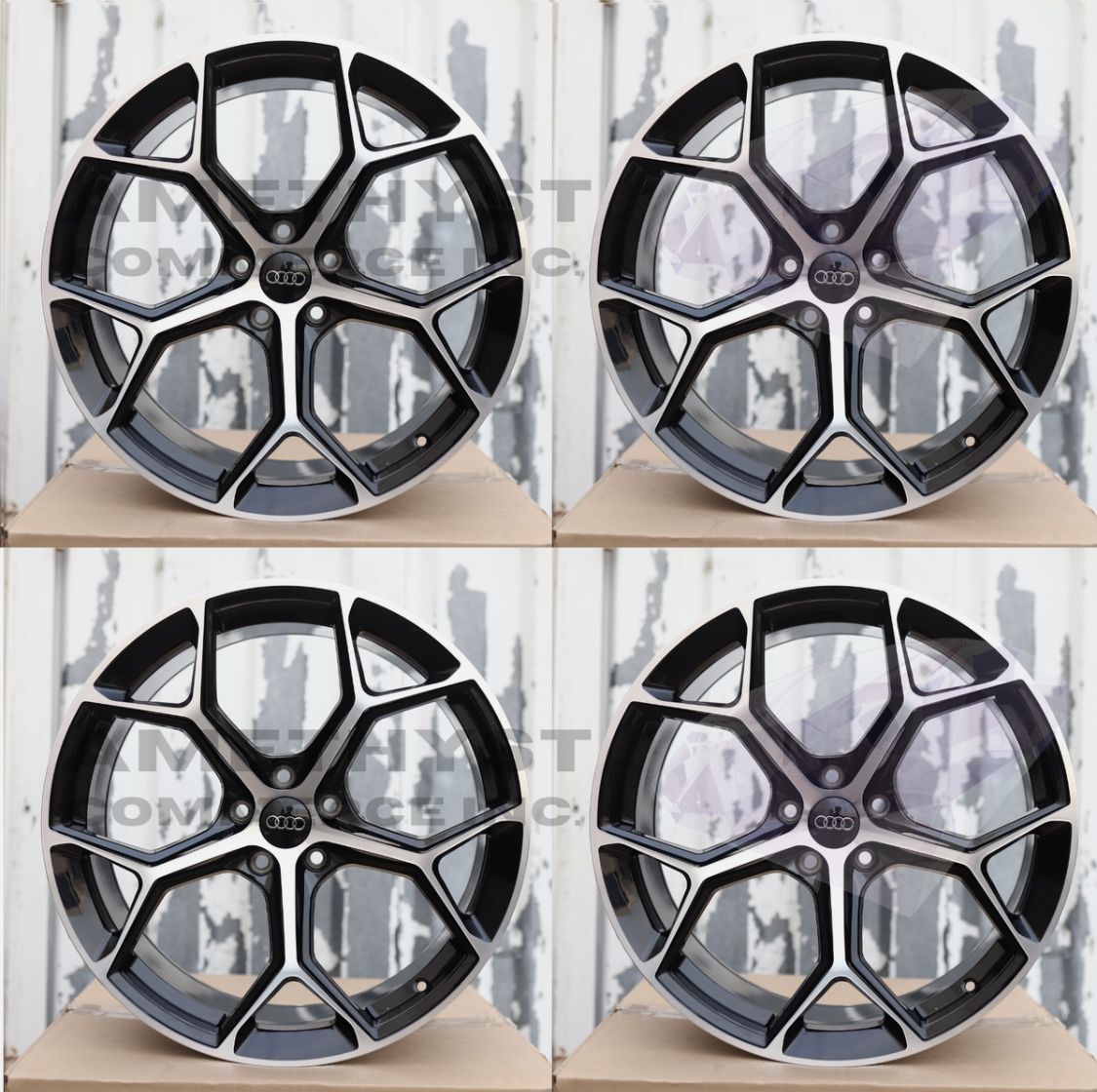 Set of four Audi R8 S-Line Style Wheels Squared Setup Model: Audi R8 S-Line Style Wheel Size: 20x9 Bolt Pattern: 5x112 Offset: +30 Hub Bore: 66.6 Finish: Gloss Black + Machine Face Condition: Brand New in box