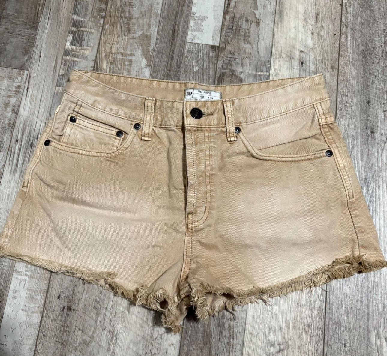 FREE PEOPLE Khaki Beige Jean Denim Raw Hem Shorts size 28