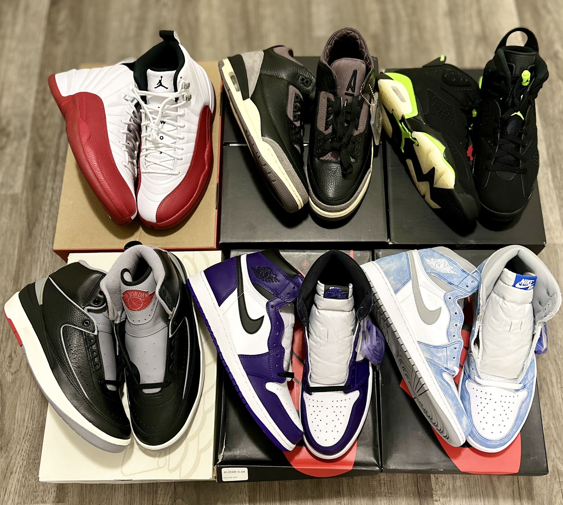 Brand New Select Jordan’s Going Out For Sale! Nike Air Jordan 2 “Black Cement” Size 9.5, $100 Nike Air Jordan 1 “Court Purple” Size 10.5, $180 Nike Air Jordan 1 “Hyper Royal” Size 10, $200 Nike Air Jordan 12 “Cherry 2023” Size 11, $210 Nike Air Jordan 3 “While U Were Sleeping” Size 11, $200 Nike Air Jordan 6 “Electric Green” Size 10, $190