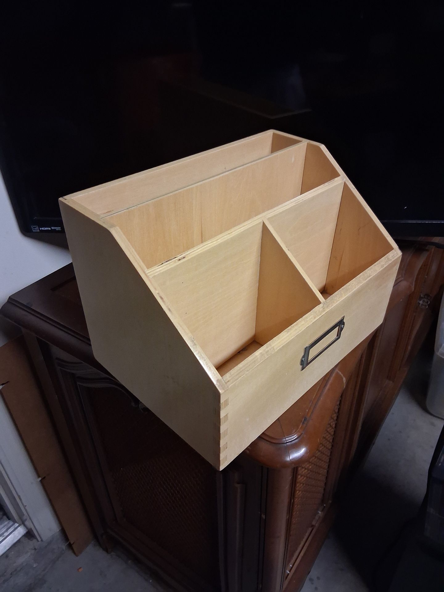 "CLEAN" RARE 70's-80's Birch Wood Desktop Organizer/Caddy it has slanted, tiered design with 4 open compartments for easy access to contents there's 2 taller back slots suitable for mail, files, or notebooks, and two shorter front compartments ideal for smaller office supplies single metal label holder on the front for labeling with vintage finger wood corners in EXCELLENT condition VERY well taken care no scratches marks or pairs (Old School Principal Office), Office Organizer Hit my profile picture I have over 200 items posted 4 sale & it will show ALL my AWESOME items PLEASE Google item & location BEFORE messaging ,message ONLY when you're available to PICKUP CASH ONLY NO TRADES PICKUP NEAR LONE MOUNTAIN AND CAM DEL ORO