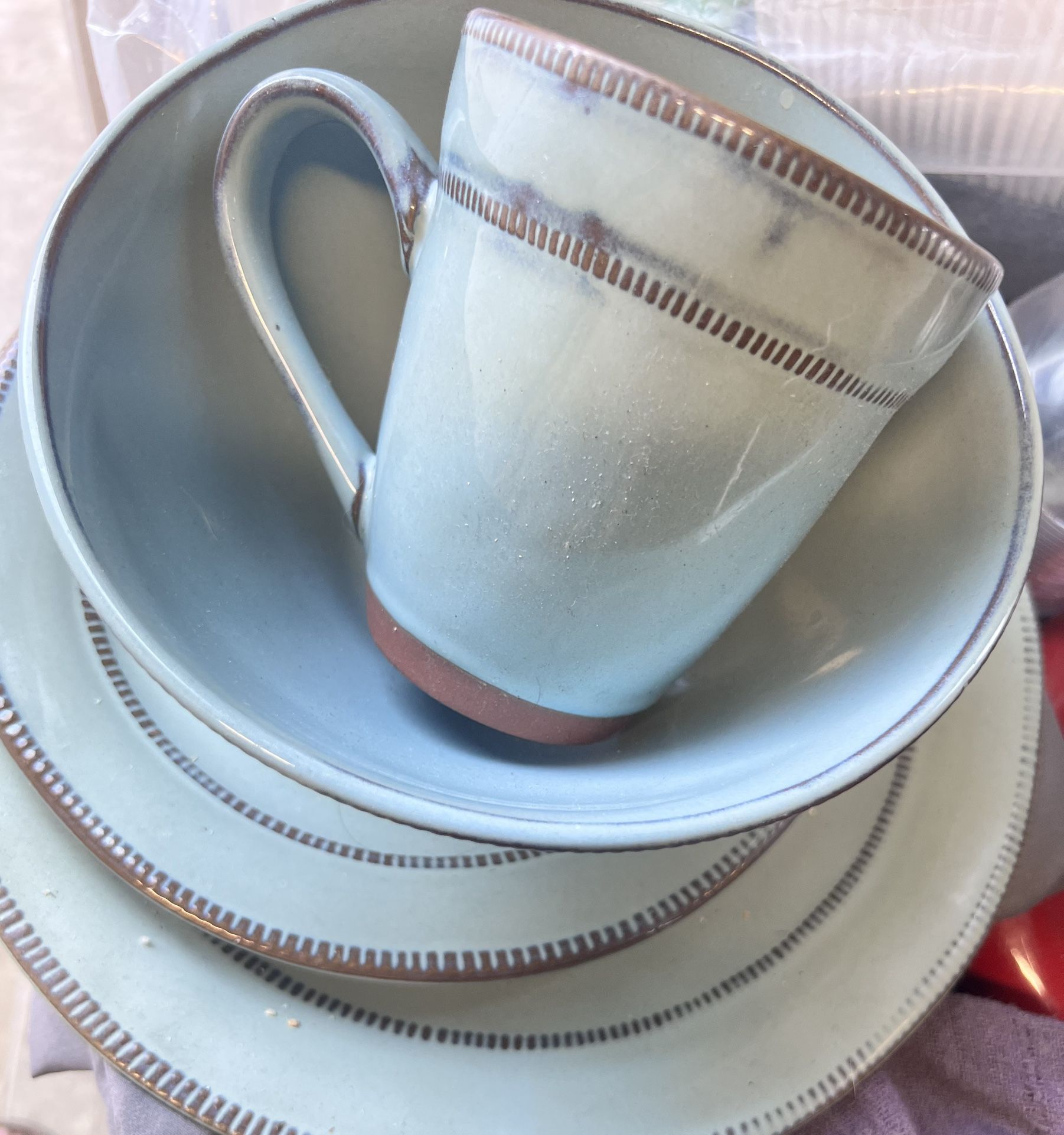 Just messing 2 coffee cups . Normal use . It looks like new . Not scratches.. none of the pieces have any chip.