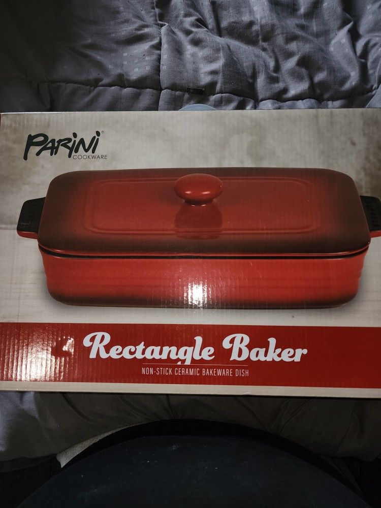 Parini Rectangle Baker $20. Brand new in unopened box. Willing to meet up within reason local. I'm a cancer patient struggling on social security trying to sell some things to make extra money to help pay my bills. Thank you in advance.