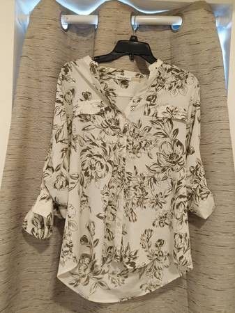 Grey and Cream color Floral Calvin Klein Women's Top. Size Medium.