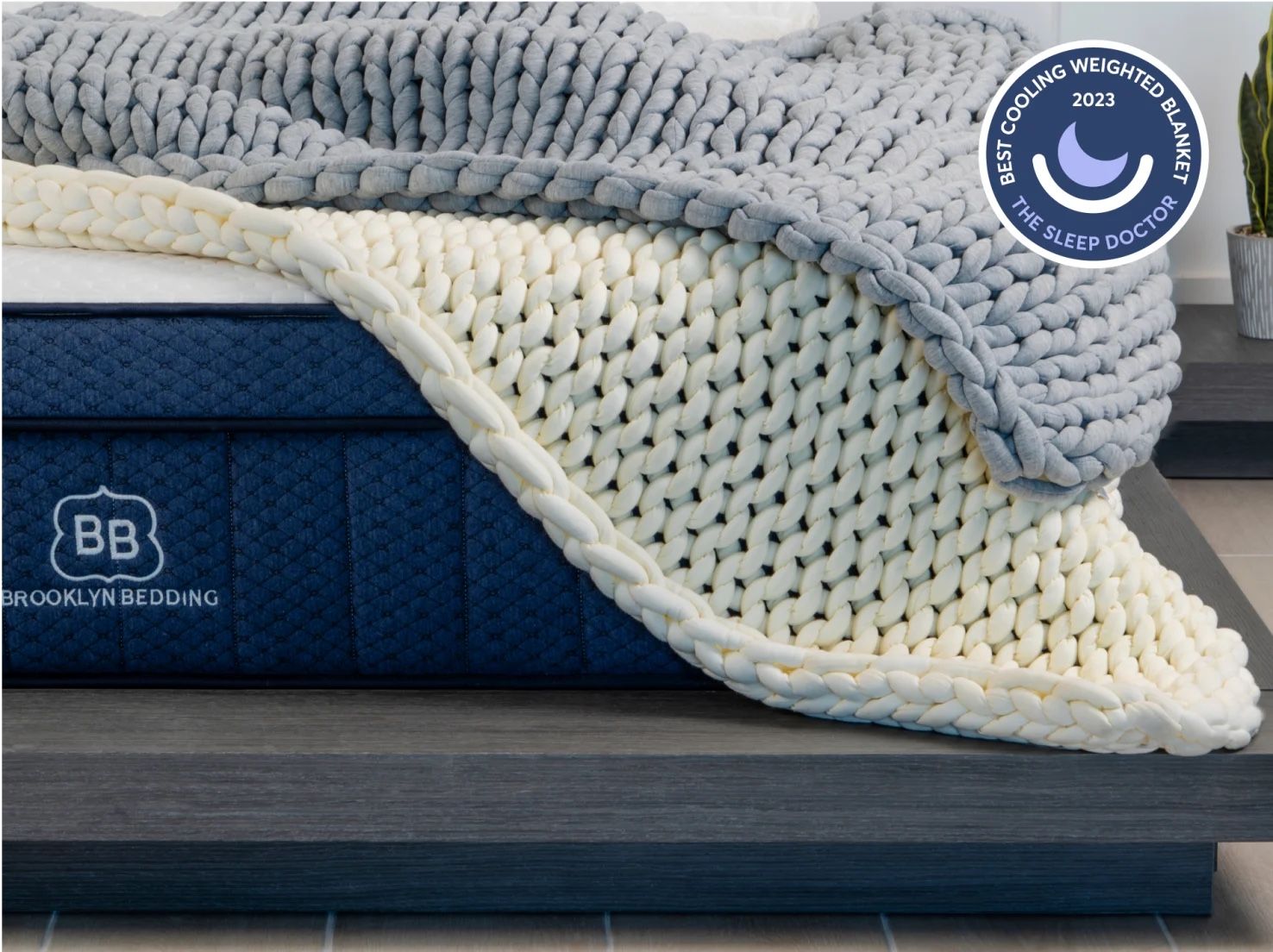 Chunky Weighted Gray (15 lbs) Knit Blanket NEW Retail: $210 50”x60” Cooling Airflow While most other weighted blankets have a tendency to sleep hot, this breathable, open-knit design offers cooling airflow to keep you cool, dry, and blissfully cozy Hand-Knitted Each chunky-knit blanket is carefully crafted by hand, giving each blanket a custom and unique feel—while also being made from quality materials for long-lasting comfort Reduces Stress Proven to reduce cortisol levels (the stress hormone) while increasing serotonin levels (the feel-good hormone) and melatonin (the sleepy hormone) through Deep Touch Pressure (DTP) therapy Buttery Soft Our soft outer shell of 100% polyester jersey knitted fabric provides a soothing cuddle on contact with a breathable inner-filling of 100% polyester