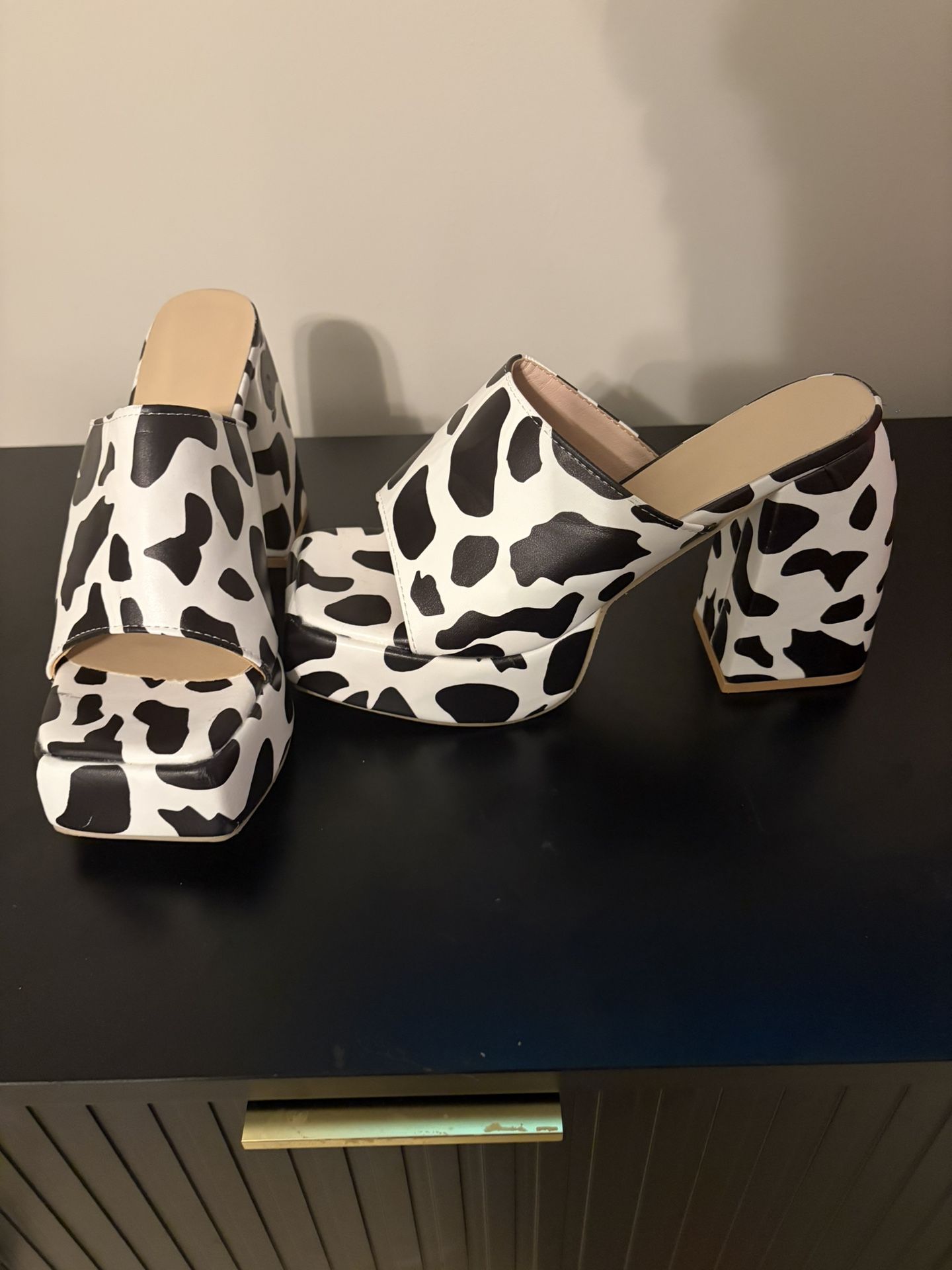 Cow Print Chunky Block Heels
