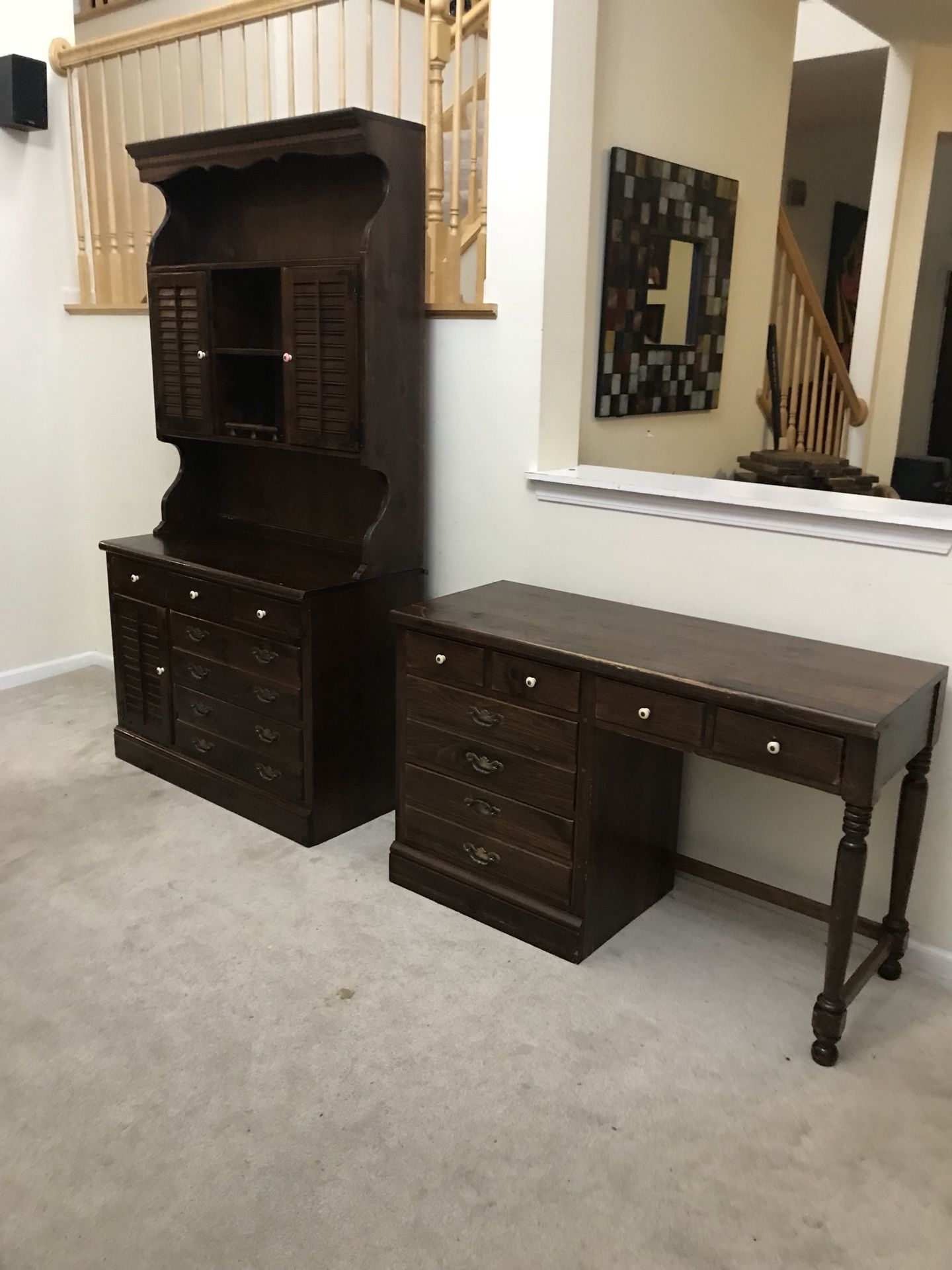 Ethan Allen Custom Old Tavern Antiqued Pine Chest with Shutter Door Hutch + Desk Hutch H-48.0” W-9.0” L-40.0” Cabinet L-40.0” W-18.5” H-30.0” Desk L-48:0” W-18.5” H-30.0” Used, in good condition Motivated Seller.
