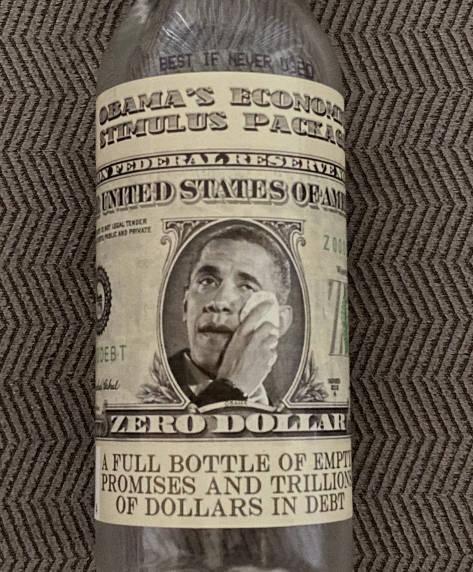 This empty bottle and pin are a great gag gift or a funny way to remember the 44th POTUS by. The bottle is in perfect condition. The label reads: Obama’s Economic Stimulus Package, United States Of America, Zero Dollar, A Bottle Full Of Empty Promises And Trillions Of Dollars In Debt. Text above the label reads: Best If Never Used. The pin is 3” in diameter. It’s not perfect; there are small black marks on the face. See pics. Cash only. Local meetup is in S. Fort Myers at Walgreens at the corner of US41 and College Parkway. Address is 12749 S Cleveland Ave Fort Myers, FL 33907.