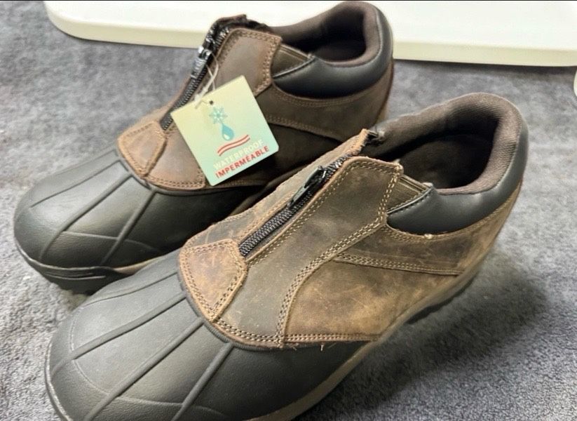 The Propet Mens Blizzard Ankle Zip Boot in Brown/Black is a stylish and comfortable choice for men in size 11.5 XX(5E). This boot features an ankle zip closure for easy wear and a classic brown color that pairs well with a variety of outfits. With a durable construction and quality materials, these boots are sure to provide both style and functionality for any casual or outdoor look.
