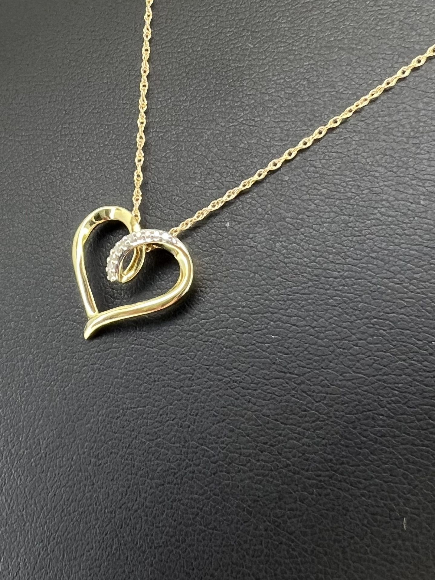 10kt Gold Heart With Diamonds Necklace & Pendant Combo 1.20grams .03ctw 165072 5