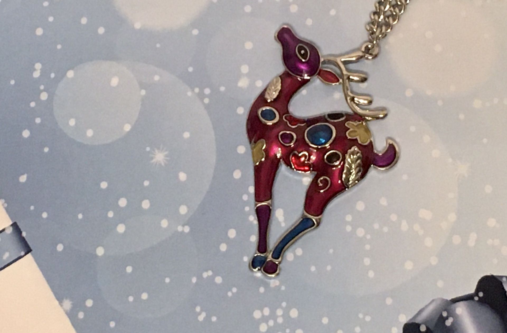 Vintage Enamel Reindeer Pendant Necklace with 24” Chain. NWT. #reindeernecklace #pendantnecklace #christmasjewelry #necklace #christmas