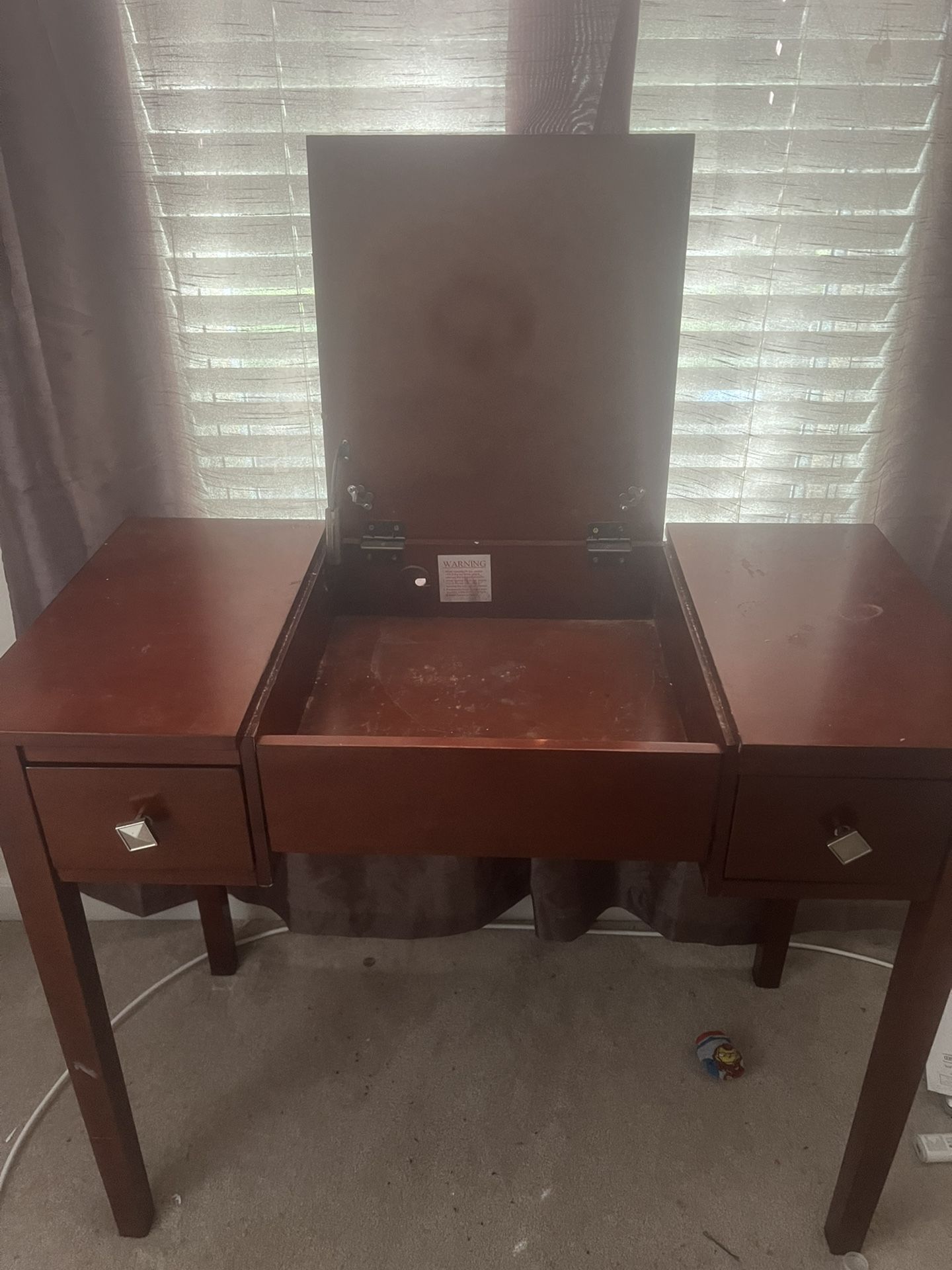 Includes mirror. Not pictured in order to avoid breaking while moving. Real wood.