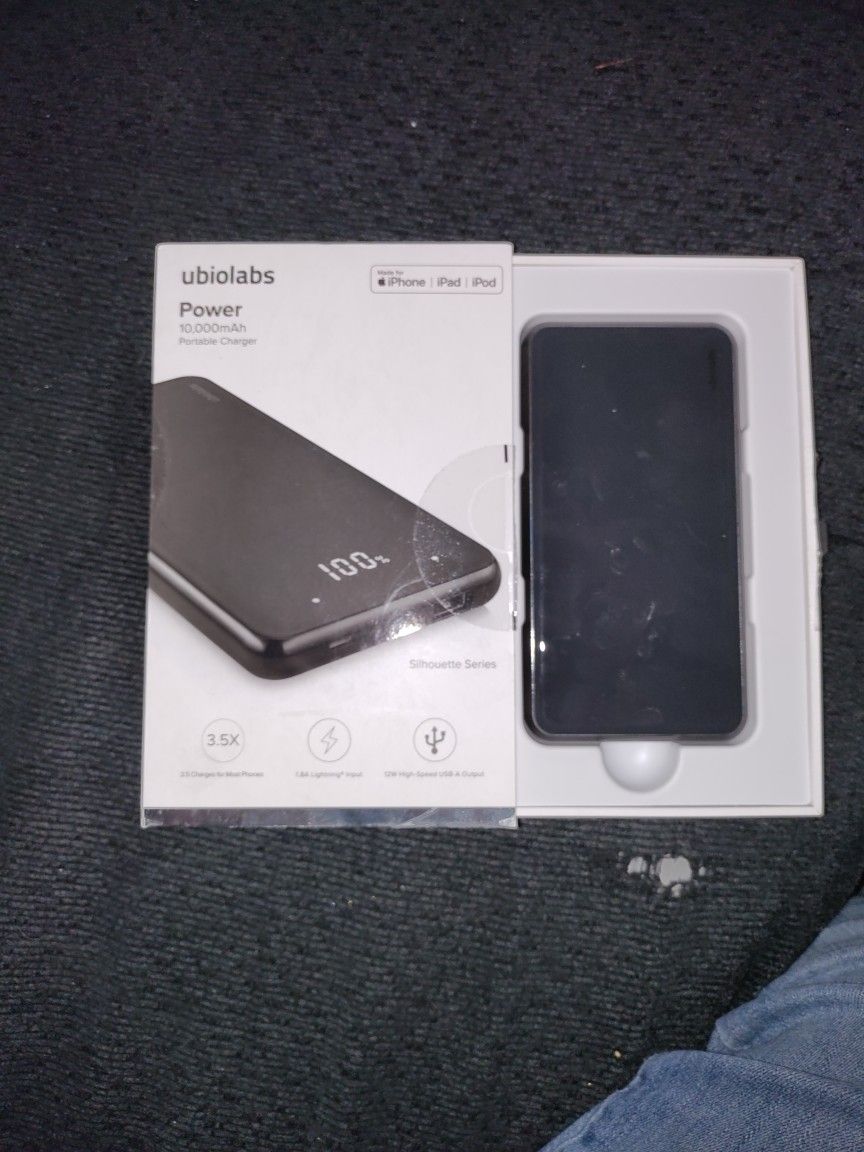 Ubiolabs Battery Charger model#pwb1089b- 10,000mAh 12w 1.8amp Lightning Iphone & Android DIGITAL portable battery charger. New in box. Asking $15 obo