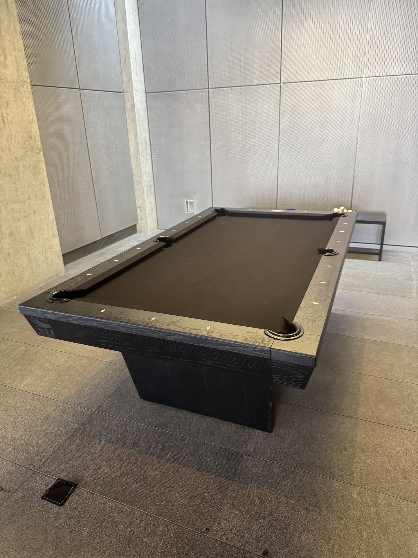 Original price $7,495!!!!! MAKE ME AN OFFER! NEEDS TO GO BY WEDNESDAY 10AM!!!!! Beautiful black wood Doc & Holliday craftsman pool table. Black felt surface. Opal-esque diamond shaped inlays around border. Beautiful base. ONLY USED ONCE! Can be dismantled if needed. MUST BE PICKED UP TODAY OR BY TOMORROW (WEDS 3/11) 10AM!!! Located in Beverly Hills just north of Sunset. 8 ft: 102" L x 58.6" W x 32.5" H