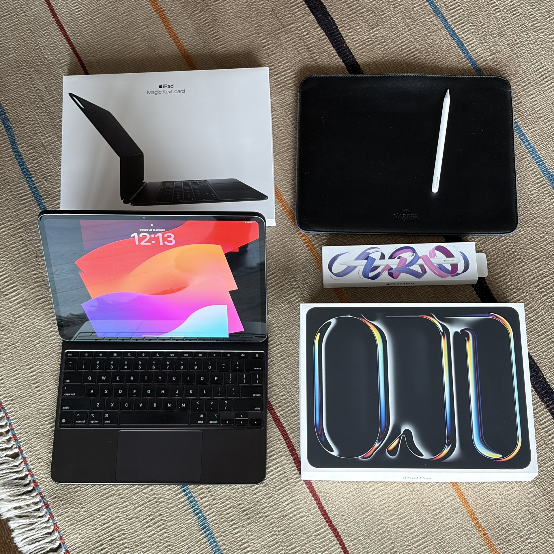 I am selling the following bundle: 1. Seventh-generation 13" M4 iPad Pro, 256GB Wifi, Space Black 2. Magic Keyboard for iPad Pro 13" 3. Apple Pencil Pro 4. Ultra slim luxury leather sleeve with Apple Pencil Holder from Harber London (hand made in Spain) - https://offerup.com/redirect/?o=aHR0cHM6Ly93d3cuaGFyYmVybG9uZG9uLmNvbS9wcm9kdWN0cy9zbGltLWlwYWQtcHJvLWV2by13aXRoLWFwcGxlLXBlbmNpbC1ob2xkZXI/dmFyaWFudD00ODYxMDczMzEzMDAxMQ== The combined value of the entire bundle is over $1800. I have original boxes for all items. I have barely used the iPad - have a max of 50 hrs of usage on it and is in absolute brand new condition with not even a hairline scratch anywhere. Same applies for the Magic Keyboard. I have never even used the Pencil Pro - it is literally new. The leather sleeve is absolutely stunning itself. I am selling because I obviously don't have a need for this - it was an impulsive purchase. No crazy low-ballers please.