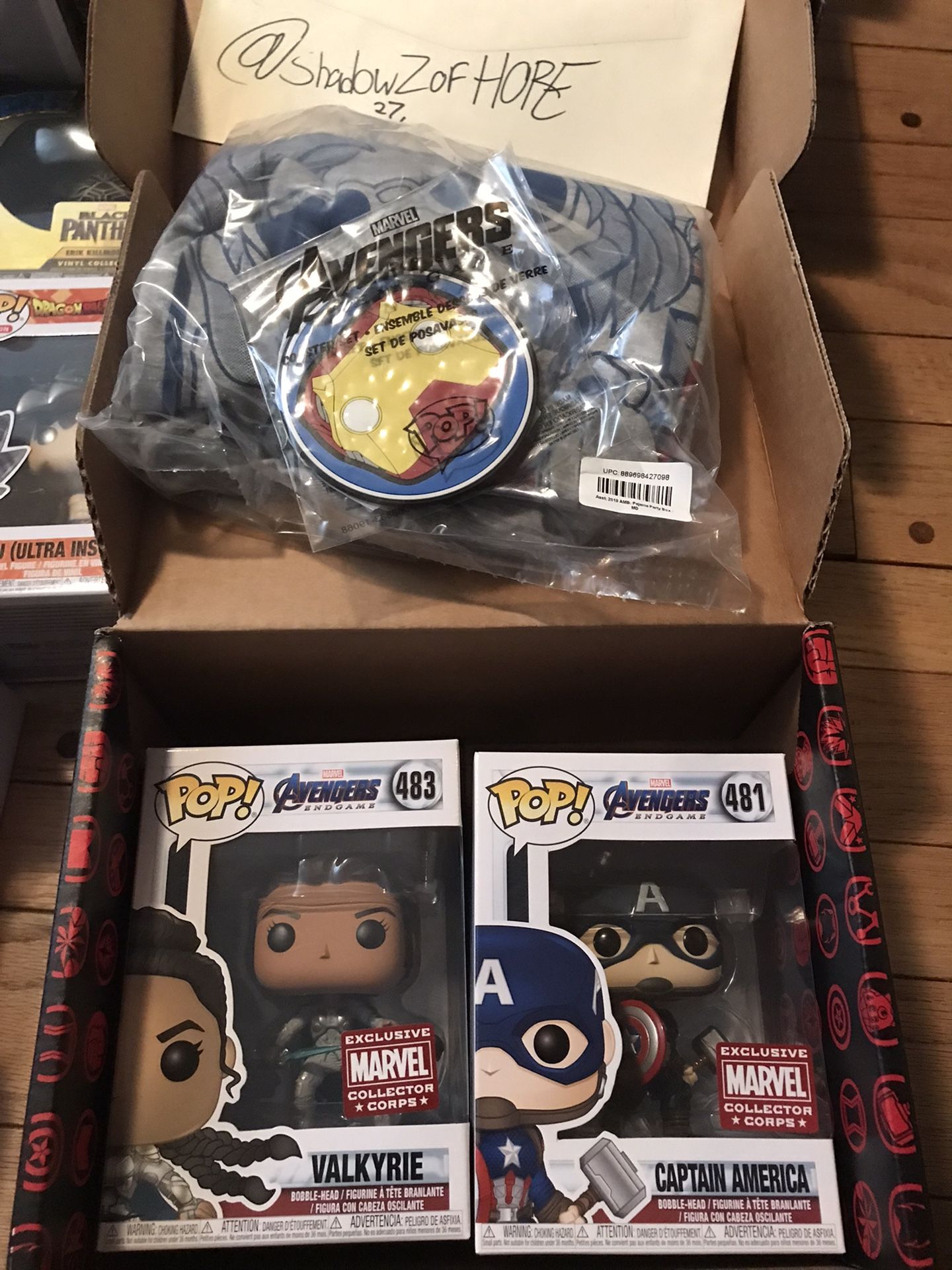 Complete MCC Endgame box. Pops and coasters are unopened, shirt (M) was opened and hung on a hanger. Please let me know if you have any questions. Thank you.