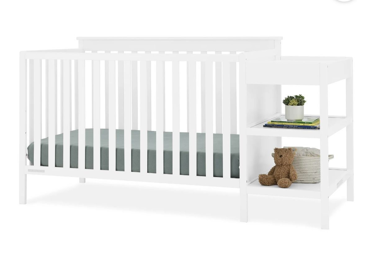 Delta Children Ellie 5-in-1 Convertible Crib and Changer, Bianca White - NEW