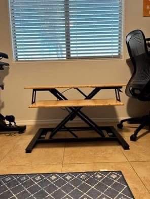 Standing desk, wood and metal. Full height 23”, low height 6.5”, length 35.5” width 20.5”. No damage.